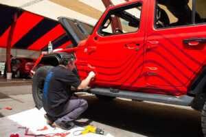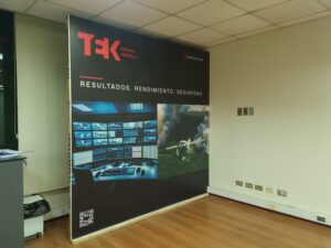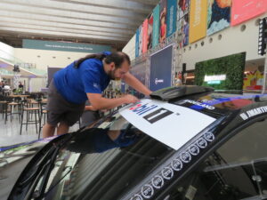 Instalación de graficas adhesivas. empavonado en mamparas y photobooth.